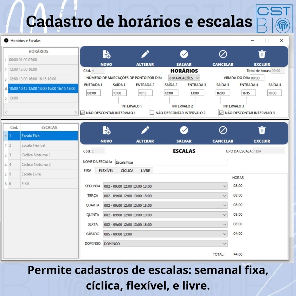 Suporta até 8 marcações de ponto por dia para cada funcionário
